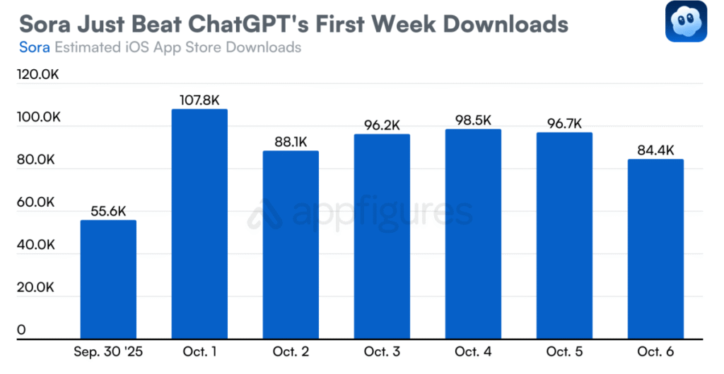Analytics firm Appfigures told The Verge Sora was downloaded 627,000 times in its first week on Apple’s App Store. Sora is still invite-only, so it’s hard to tell how many people are actually using it, but its first week has been plagued with controversy after users generated a torrent of AI slop, deepfakes, and disturbing copyright violations.