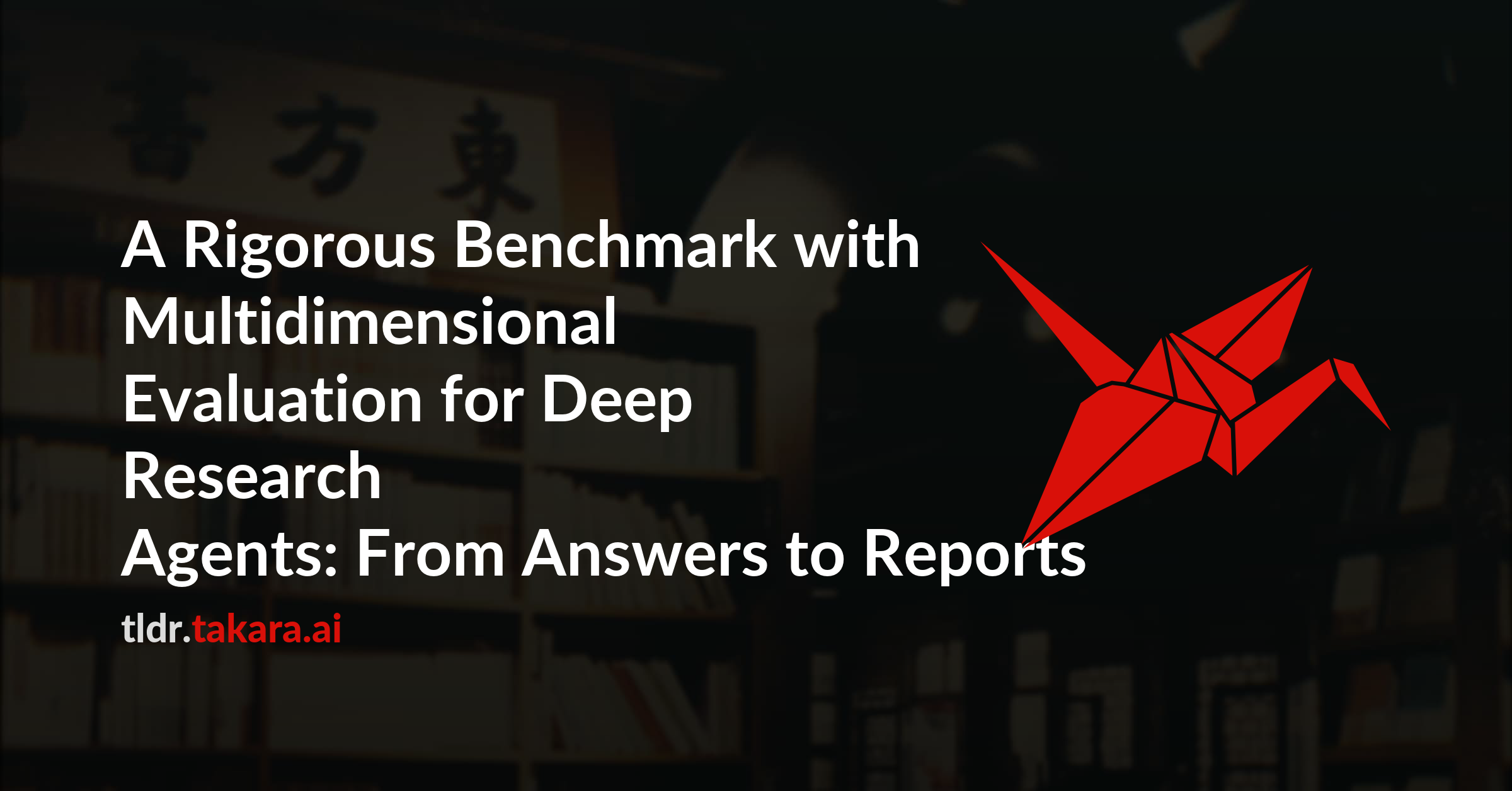 • A Rigorous Benchmark with Multidimensional Evaluation for Deep Research Agents: From Answers to Reports – Takara TLDR
