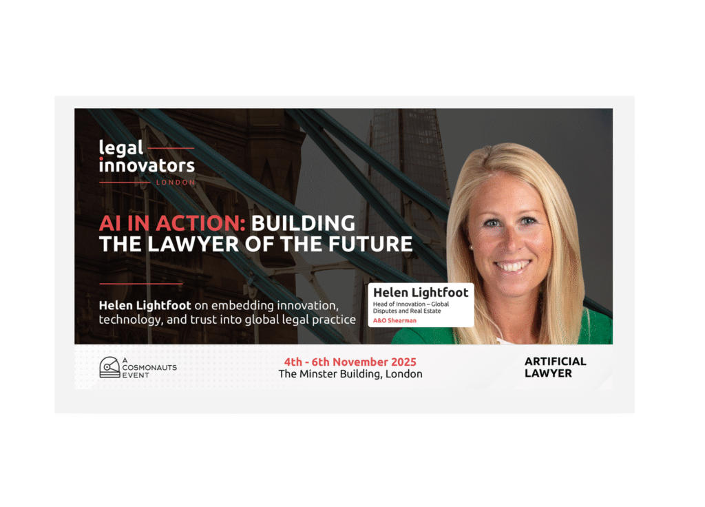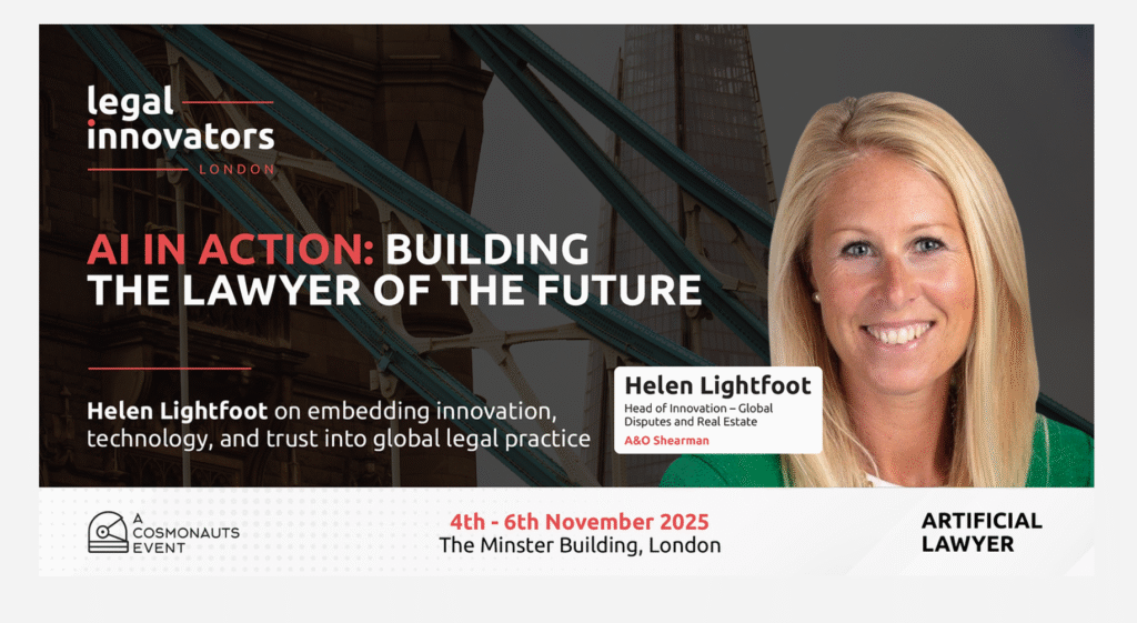 Ahead of the Legal Innovators UK conference on November 4, 5 and 6 in London, the team spoke to Helen Lightfoot, Head of Innovation, Global Disputes at A&O Shearman. Helen has been at the forefront of AI-driven transformation, helping one of the world’s leading law firms move from experimentation to real-world impact.