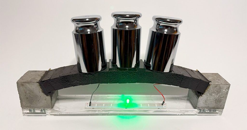 Inspired by ancient Roman architecture, the researchers – most of whom are part of a dedicated ec3 research hub at MIT – built a model-sized arch to demonstrate ec3’s structural load-bearing and energy storage capabilities. It powered an LED light, operating at 9 V. You can see it at the top of this article.
