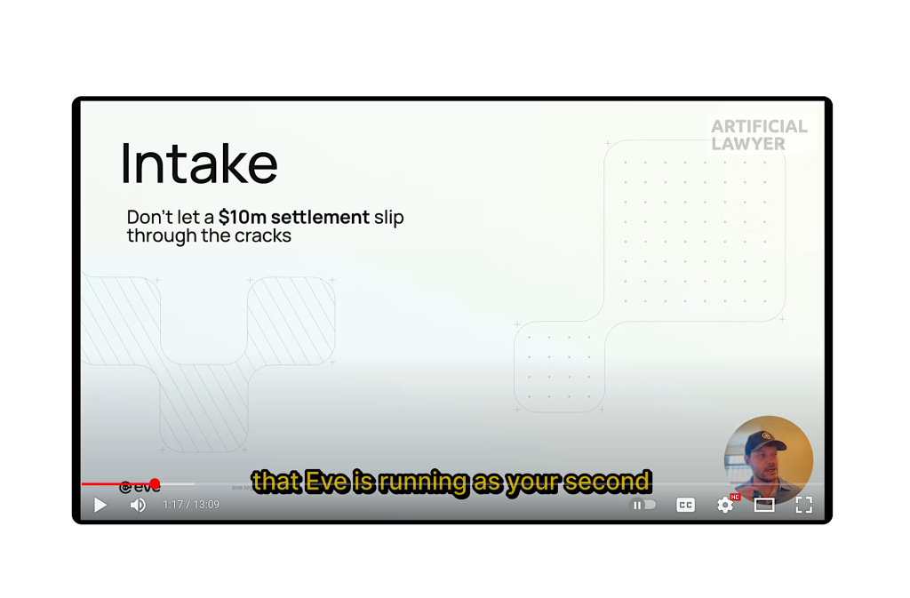 In this week’s AL TV Product Walk Through, Matt Noe, co-founder of Eve, shows their new AI-driven intake product designed to assist law firms in gaining and managing client leads more effectively.