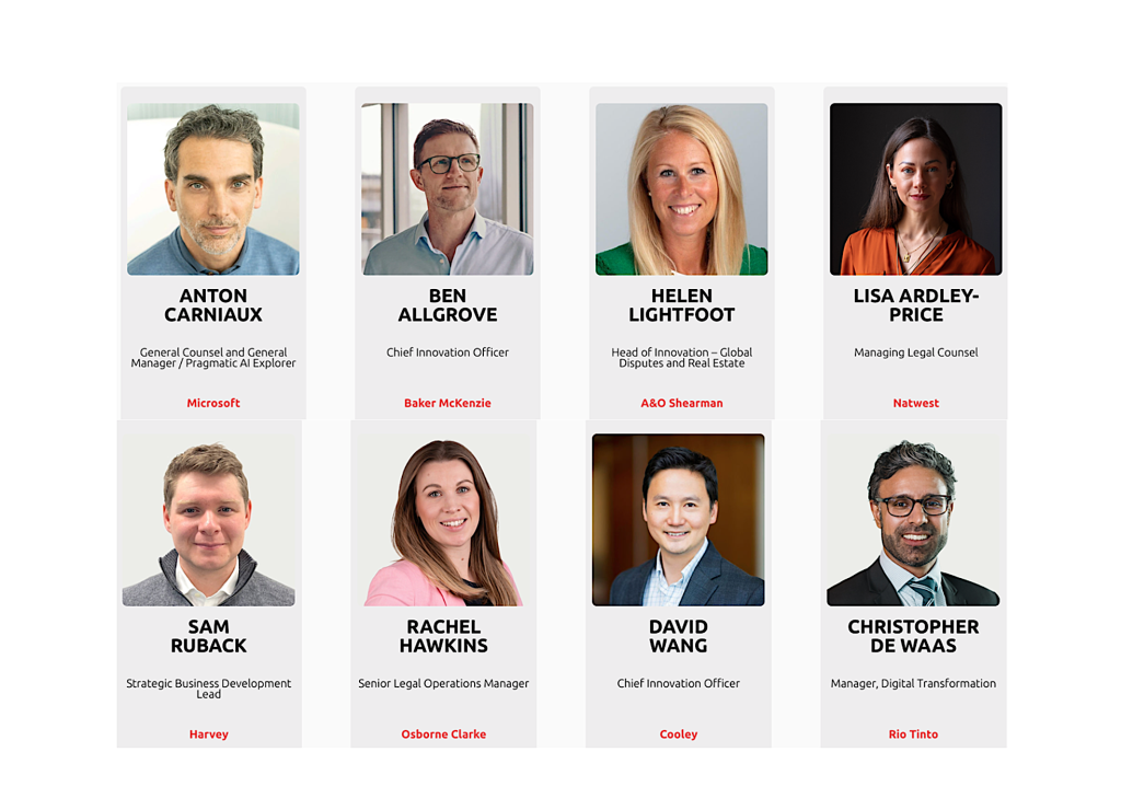 We have experts on legal AI and legal ops, heads of innovation, partners with a tech focus and senior inhouse lawyers as well; we have professionals who have lived and breathed legal innovation at the cutting edge; and we of course have plenty of speakers from the most pioneering legal tech companies, such as Harvey, Legora, Spellbook, DeepJudge and August, to giants such as LexisNexis and Disco, to startups such as Jylo, and many more.