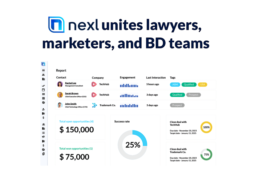Dave Yuan, Founder of Tidemark – and who also previously invested in Clio – added: ‘By fusing relationship intelligence with CRM, Nexl have created a rich user experience that occupies a true control point in the industry. We’re thrilled to partner with Nexl for the long haul as they continue to become the go-to platform for law firms globally.’