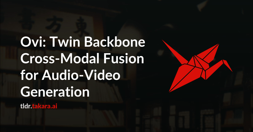 • Ovi: Twin Backbone Cross-Modal Fusion for Audio-Video Generation – Takara TLDR
