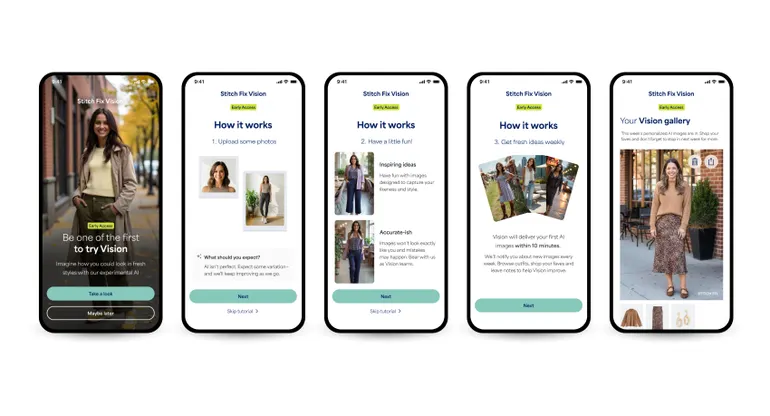The online personal styling company announced the beta launch of a style visualization tool on Monday, dubbed Stitch Fix Vision. The feature uses AI tech to provide clients with an image of their likeness wearing shoppable outfits. Stitch Fix Vision recommends items based on each shoppers style profile while incorporating the latest fashion trends.