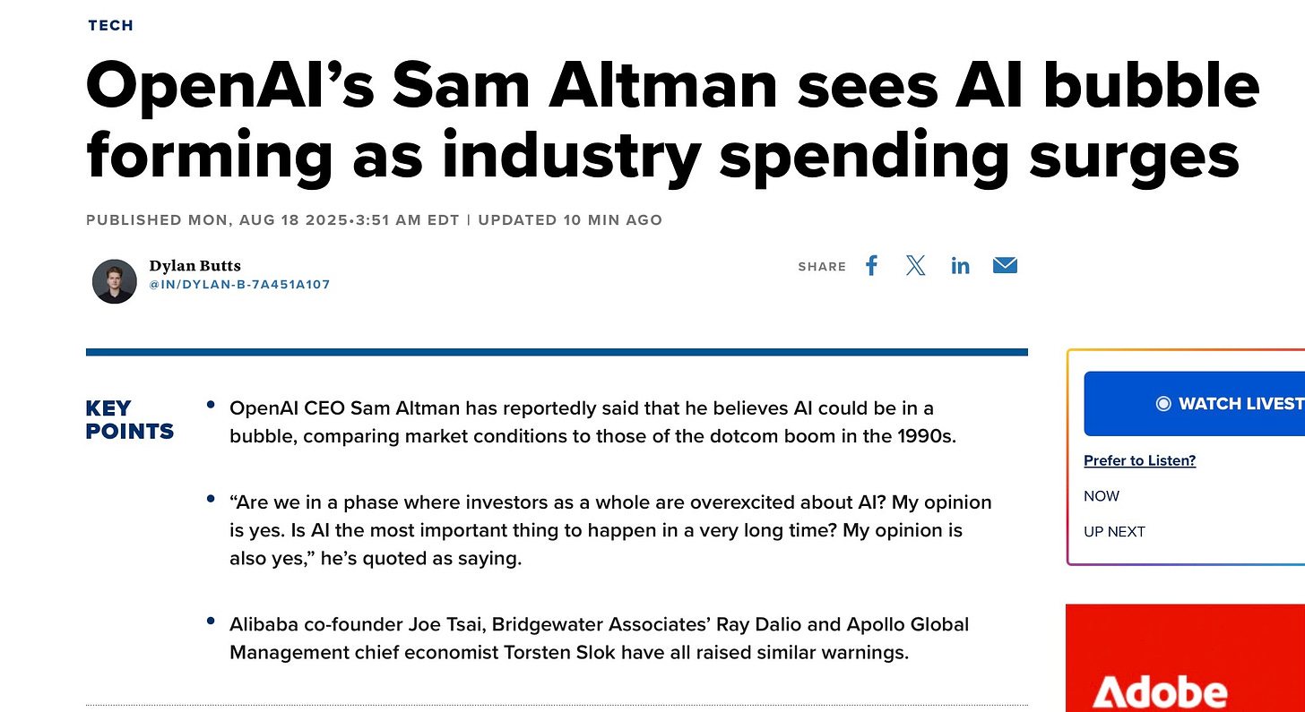 Now he is also apparently acknowledging that AI might be in a bubble: