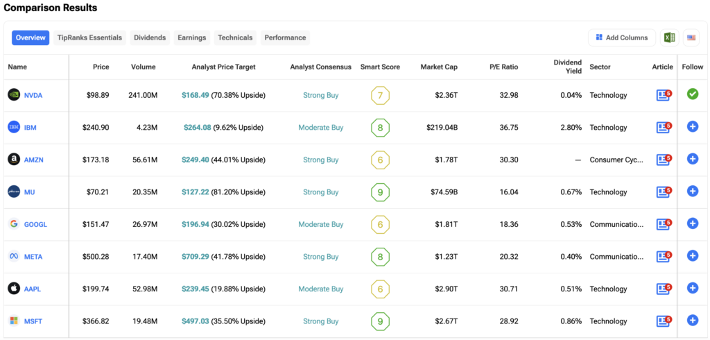 This is where stock comparison tools help cut through the noise. After the fallout from DeepSeek, investors are searching for AI stocks with stronger foundations and safer growth paths. To see how top AI names like Nvidia and Microsoft compare, check out the TipRanks Stocks Comparison tool below. It’s a straightforward way to weigh the risks and rewards across the sector.